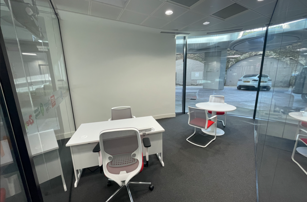 Welcome to a modern, vibrant office space situated in a prime location in Vauxhall, seamlessly merging functionality with style. High ceilings and large windows adorned with glass create an energizing atmosphere, offering abundant natural light and a connection to the surrounding environment.