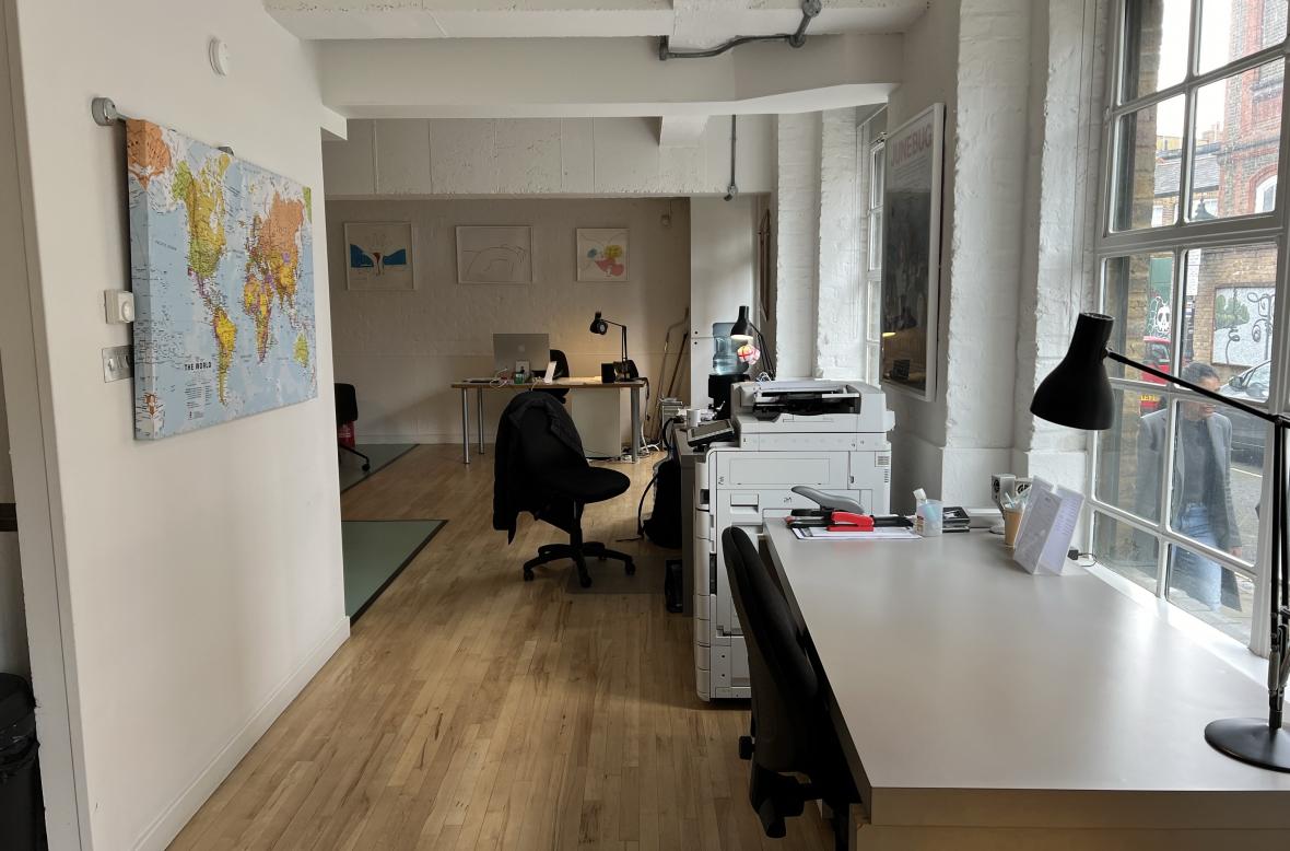 Ezra street is a quiet friendly street, we have good neighbours and a lovely Italian restaurant on the corner ‘Campania’ A 60 second walk to Columbia Road gives access to very nice coffee, shops , Brawn Restaurant and the Royal Oak pub which is an office favourite.