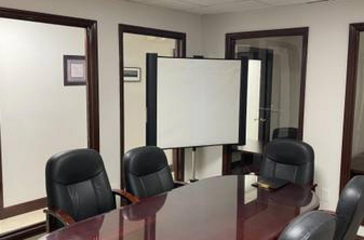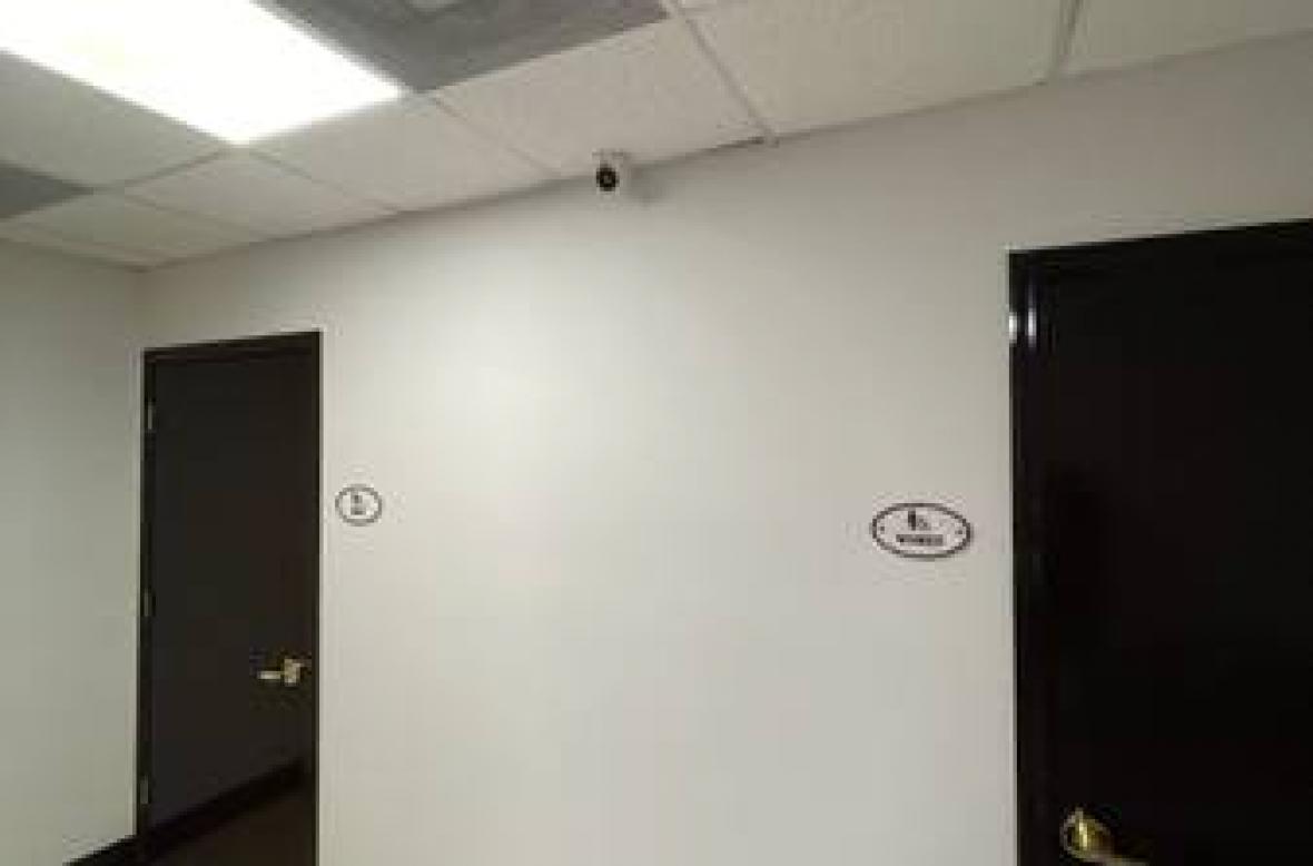 Embrace productivity in this spacious office located in Doral, Florida, offering abundant natural light and scenic views of green areas. Ideal for a team of two, it comes equipped with two glass desks and essential office furniture. The office is secured with cameras and offers elevator access for disabled individuals in a building that includes parking, a meeting room, a kitchen, and gender-specific restrooms on the second floor. this office measures approximately 12'4 x 10'6. Perfectly situated for professionals seeking a refreshing workspace in the heart of Doral.