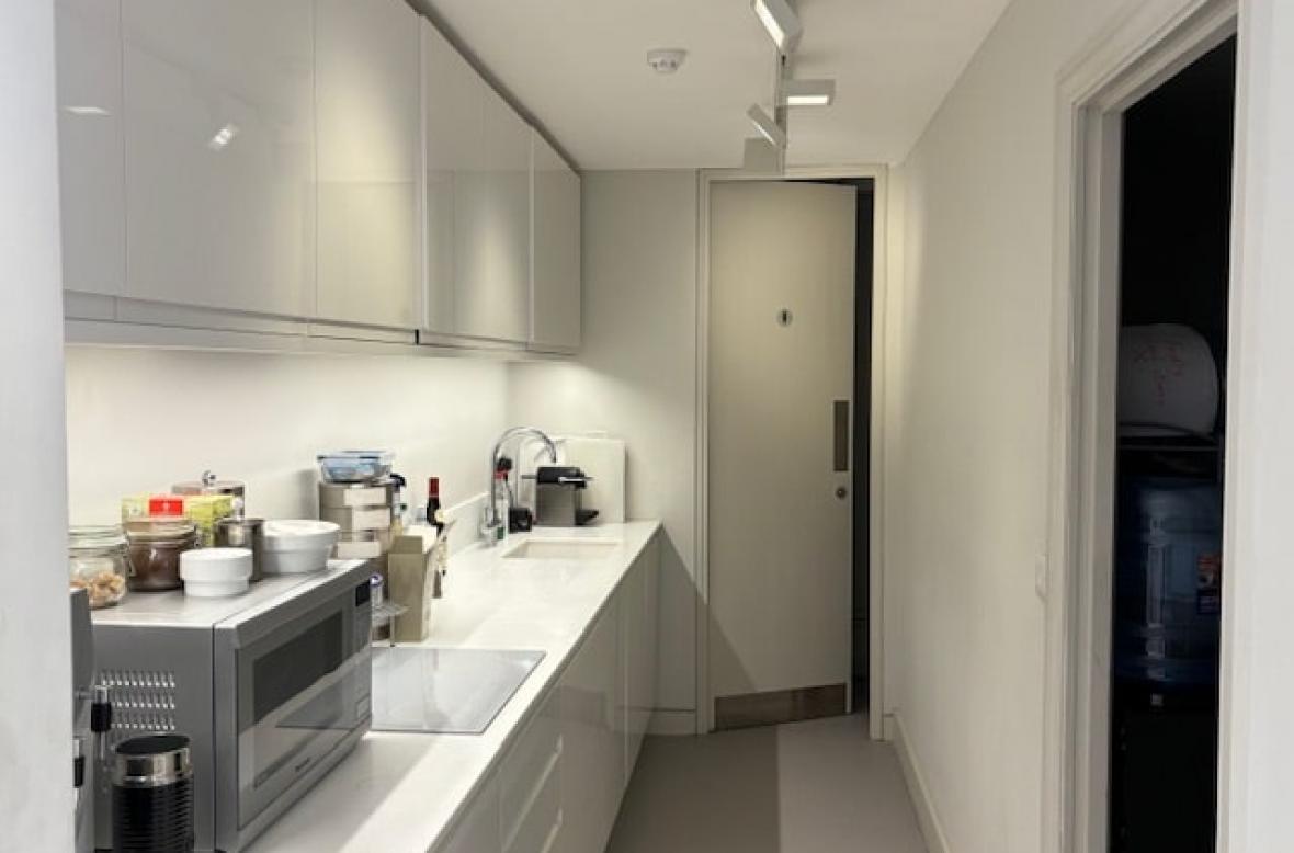 Light modern open plan office, first floor, dailiy cleaning, wifi, security, 24/7 access, own door possible.