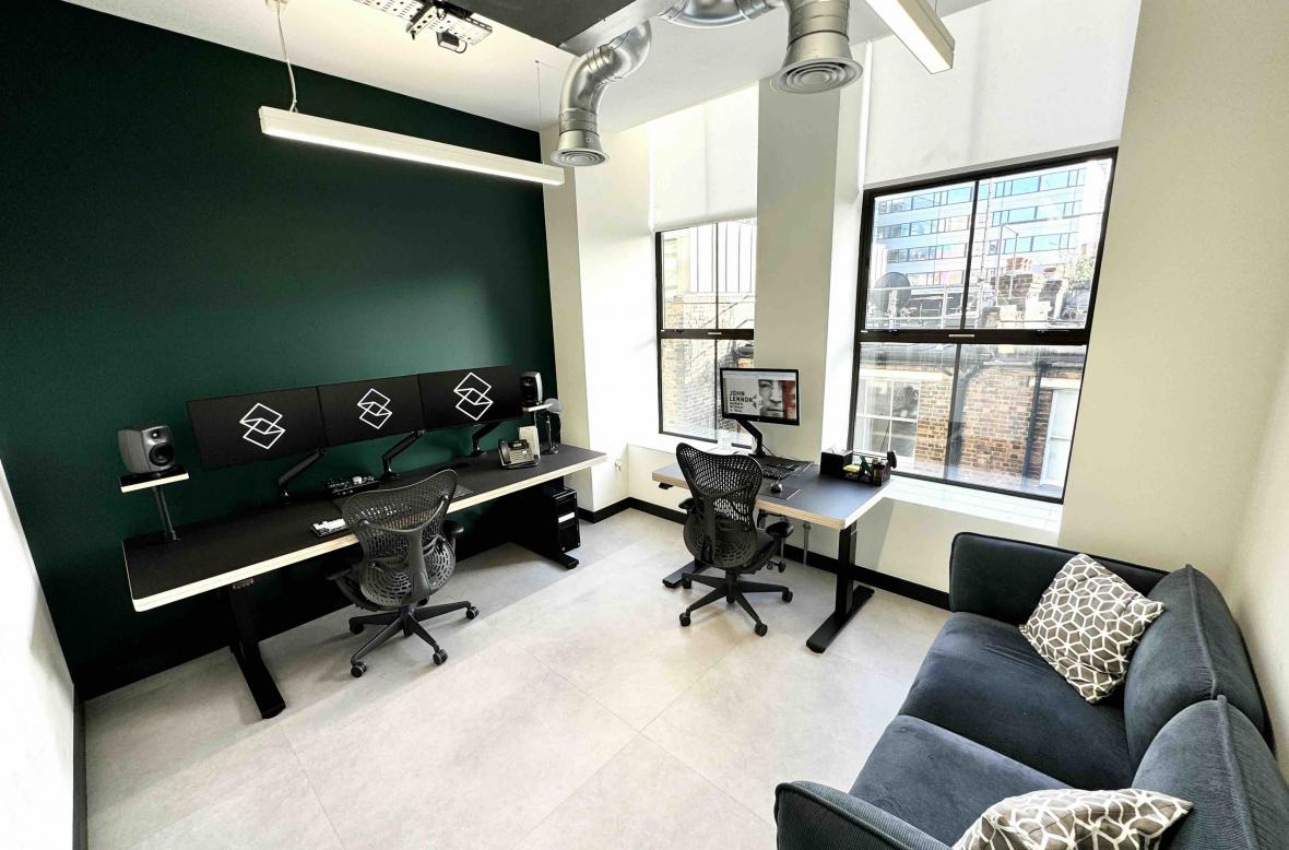 We have three 10-15,000 sq ft buildings based in Old Street, Shoreditch, and Hoxton, with modular offices available that can accommodate desks for 2-4 people. These offices are available with or without computers, monitors, and speakers.