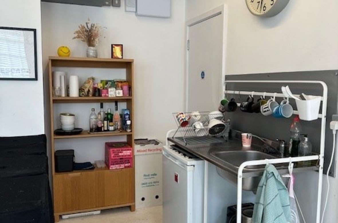 The office is on the ground floor in a mews development and has good light, 24 hour access, heating, fast wifi, disabled accessible toilet, a kitchen and a communal seating area. There are a few creative companies around the mews plus a hot yoga studio. It's a nice place to work.