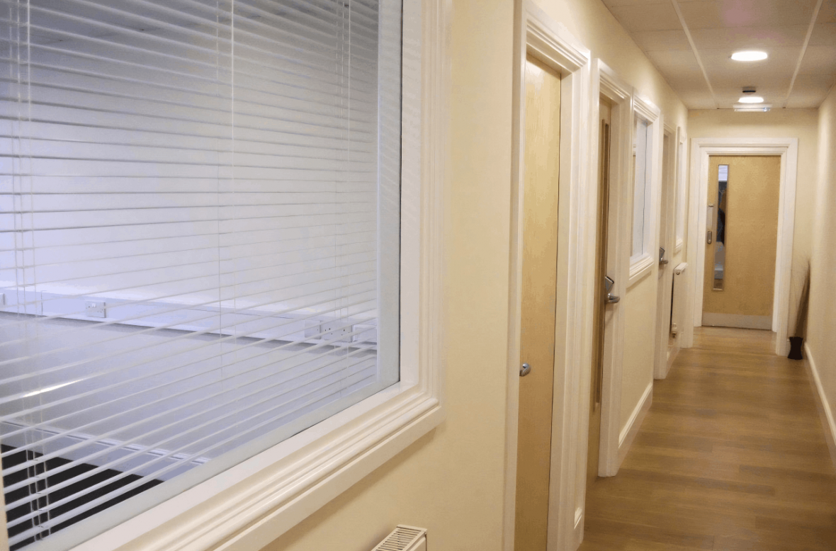 Tenants have access to well-maintained communal kitchen facilities, complete with a TV and breakfast bar—ideal for breaks or informal meetings. A range of office furniture and equipment, including desks, chairs, filing cabinets, and telephones, can also be arranged on request, helping you get up and running with ease. Office sizes range from 105 sq. ft. to 225 sq. ft., offering flexibility for different team sizes.